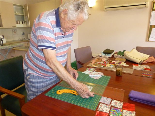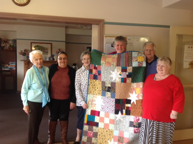 The residents of Dianella Hostel Retirement Village, Kilmore in Victoria wanted to take part in Aussie Heroes. I have been working with them fortnightly for 3 months. They have thoroughly enjoyed these sessions and looked forward to each meeting. 2 quilts were proudly made.