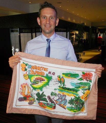 Some of the fellows who were in Iraq with Matt are still and some are out but I felt that we needed to give them a little something as well to say thank you for their service. Joan helped me out and I took along a tea towel laundry bag for each of them. I did not have enough time to get all the bags personalised for each fellow unfortunately but they did not seem to mind. A few of them were happy to post for a photo with theirs. This fellow was particularly delighted as he got married on Magnetic Island so his bag could not have been more appropriate for him.