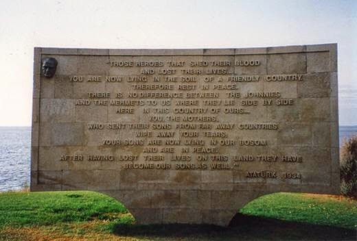 The Turkish General knew by heart the words of Mustafa Kamel Ataturk, inscribed in stone at the Turkish memorial site at ANZAC Cove.