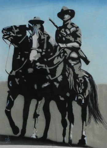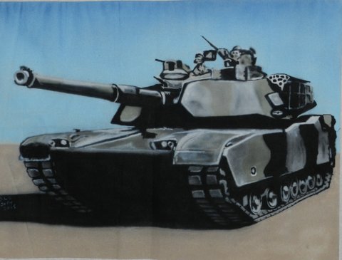These are the first two pictures airbrushed by Brian. His wife, Helen, is one of our quilters and after seeing what she does and how the troops respond, he wanted to see if he could contribute. These are his first two offerings and I think they are fabulous. They have been airbrushed and then, according to Helen, treated, then washed and dried several times to make them suitable for the inclusion in a quilt.