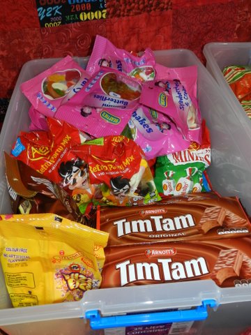 More lollies, many donated, and Tim Tams!! Again, Hooray for specials!!!