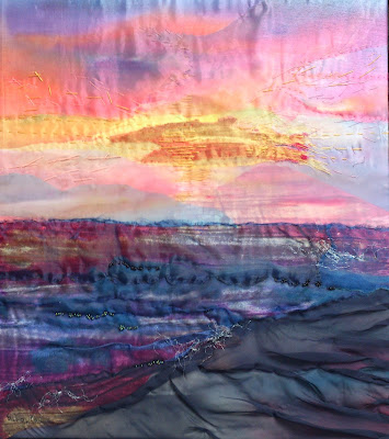 With fabric, dyes and stitch Shirley tries to portray the celebration of family stories and memories plus the beauty of nature. She explores the tactile nature of fabrics, the range of textures and colours and enhances her work with thread. More recently Shirley is incorporating paint, making her work more mixed media.