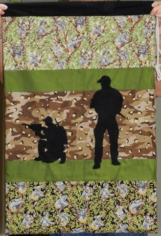 Well at last it is time to reveal the entries in this year’s ANZAC Day Laundry Bag Challenge and what awesome entries we have. I don’t want to bias the judge by commenting on any of the bags so I am just going to list them under the name of the creator. It will be up to the Judge, my contact in Kabul, to select the first second and third place. I will be forwarding a copy of this post off to her so that she can make her decision but I don’t expect an answer till after ANZAC Day at some point so I will keep you posted.