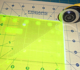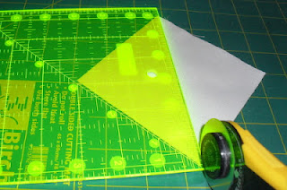 Cut along the diagonal line, to form two separate pieces of work.