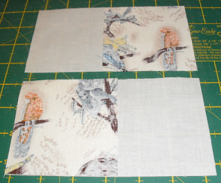 Next, take the 6.5″ x 3.5″ pieces, and two of your 3.5″ main fabric squares. Place the 3.5″ squares face down (in other words, both of these fabrics will be right sides facing each other) on the opposite ends of the 6.5″ pieces. Sew them onto the 6.5″ pieces using a 1/4″ seam allowance. Press the seams on these pieces towards the 3.5″ square (sorry I didn’t take a pic of this).