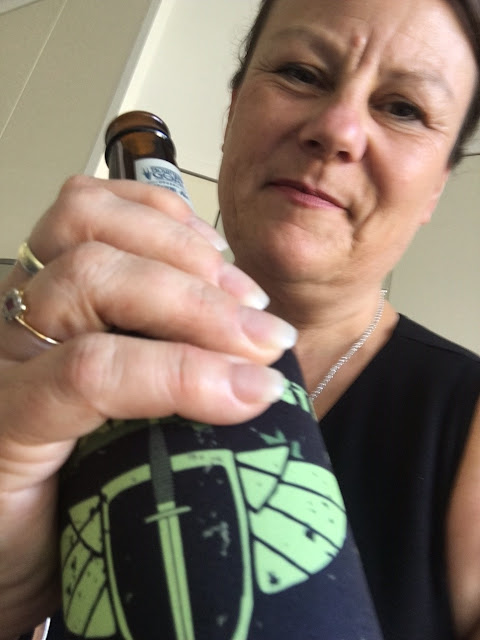 Caroline and her awesome, stubbie holder
