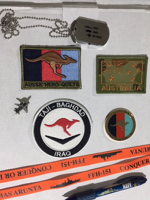 I appreciate all the gifts that were donated but I especially want to thank Command WO K.G. Robertson and SGT Roddy Ross and everyone from HQJTF633 for the Aussie Hero Patch made in Kabul Afghanistan with donations from our deployed personnel…Thankyou so much it will be treasured!