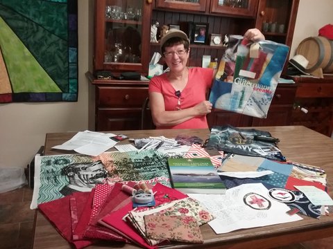 Jan-Maree surprised all the quilters at the Canberra dinner with a Gift Bag containing some fabric and a variety of fantastic items.