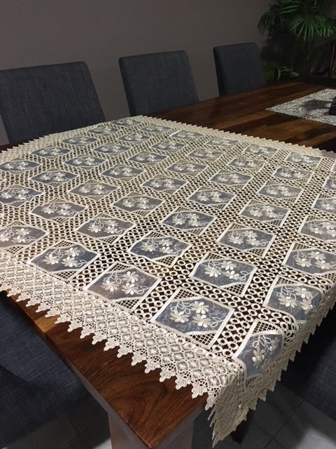I just LOVE all my treasures from the bag. Nic Nac’s from the Services touch my heart. And my table cloth from Dubai…gorgeous! Using Bernina pen to design quilt LOL!