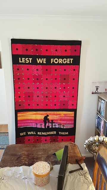 This was won but the extremely happy Chaplain Mark… he LOVES it. He has wanted the ANZAC Themed quilt but it went passed his limit so he was doubly delighted to receive the laundry bag and the last time I spoke to him he was thinking of framing it.