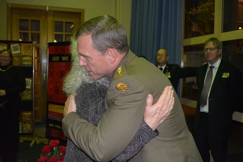 Guest were encouraged to pause for a photo in front of one of the two Fallen Warrior Quilts. Just a note, there was one with an RAN crest and one with a Rising Sun. The RAAF was not deliberately left out, but the sad fact is that both these quilts are actually destined to head off in the near future to families who have lost loved ones.