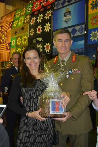 The next item to be auctioned was our beautiful Aussie Themed quilt. The Chief of Joint Operations and his wife, Belinda, were the successful bidders for this one. The final price was an absolute steal with all the work in it but I think people were waiting for the next two items on the list.