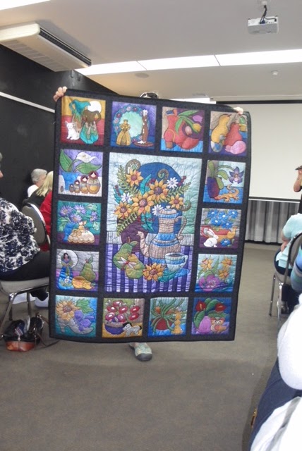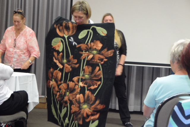 Starting with a bulging suitcase full of quilts Helen showed us quilt after quilt after quilt and all of them absolutely fabulous……