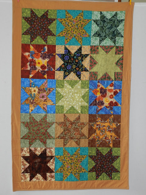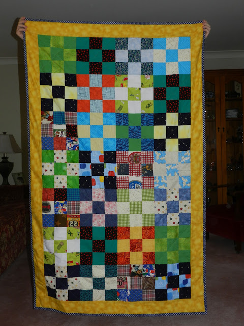 This was made from BOM blocks from February! Got me hooked on nine patches these quilts!