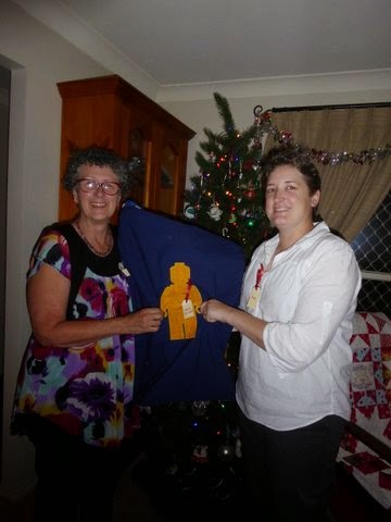 Thursday night last week was the night of our Christmas Dinner. It was a great chance for quilters and recipients to meet and greet each other. I welcomed around a dozen or more recipients, as well as more than thirty quilters and some of their husbands and partners into my home. After a week of violent dinner time storms we had a reprieve of sorts with no real storms but cool wet weather. At least that meant a safer trip for those who attended, some of whom came some distance to attend.