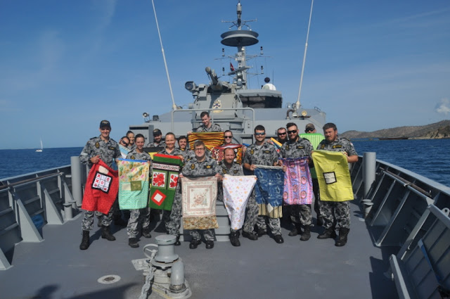 I am interested for the quilt in having my Corps badge (RAAOC) sewn on ( I can send you one), utilizing the Corps identification colours (three vertical scarlet/royal blue/scarlet bands of equal thickness), the Australian Flag, a Bathurst/motor racing theme (Holden supporter) and AFL Richmond Tigers.