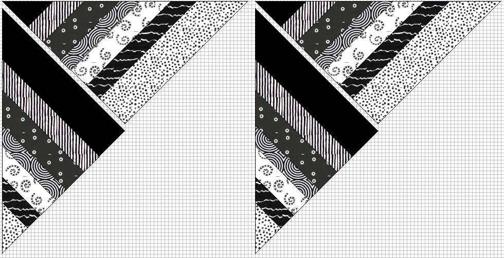 Turn the triangles around as shown below – the diagonal line becomes the outside edge.