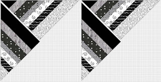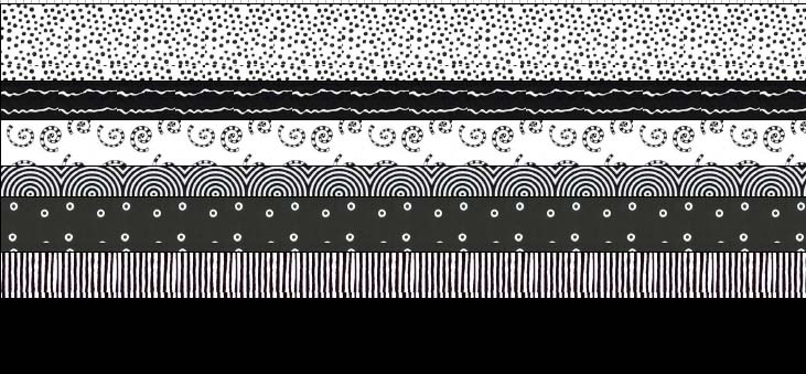 Seven fabrics are needed for the block. Please alternate white background fabrics and black background fabrics as shown below, giving contrast between the strips.