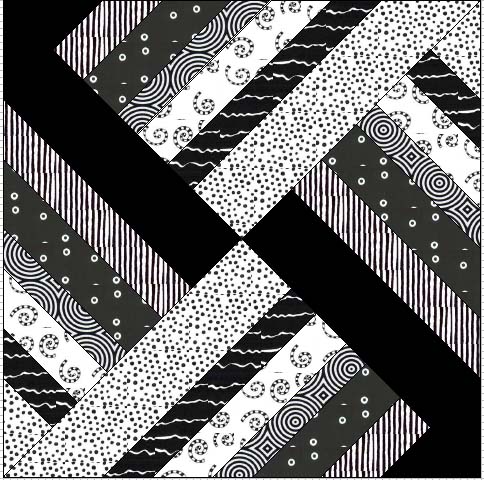 Strip #4 Either combination of black and white giving contrast between the strips – cut 1.75 inch wide