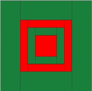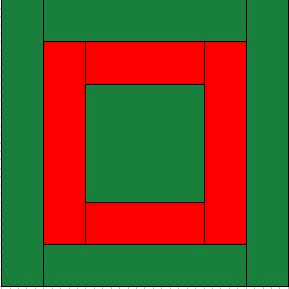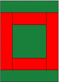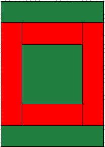 Join the large rectangles (red) to the remaining two sides of the centre square and press the seams to one side