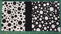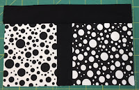 Join the two small strips of plain black fabric to either side of the centre rectangle