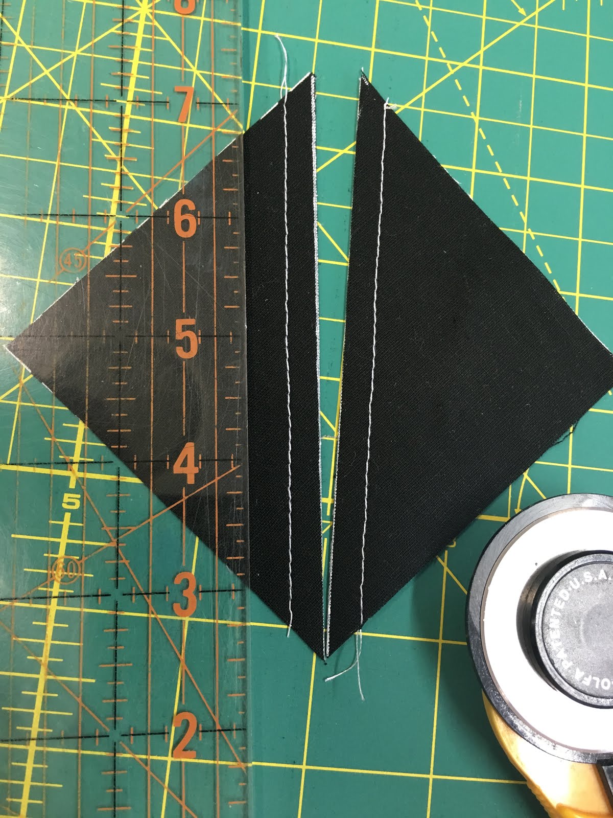 Cut off the ends of the large triangles but DO NOT RUN THE CUTTER OVER THE PINS