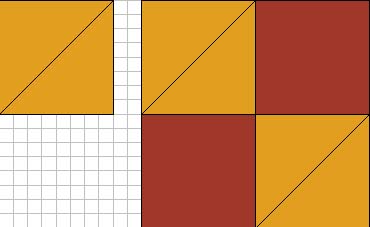 On the wrong side of the fabric, draw a diagonal line from corner to corner of each gold square so that it can easily be seen when sewing – see the gold square below.