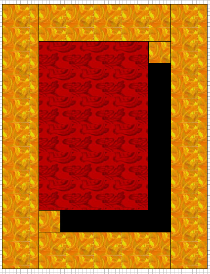 Join the long yellow strips to the block as shown and press seam allowances towards centre of the block