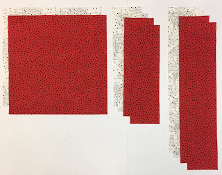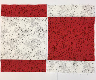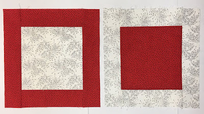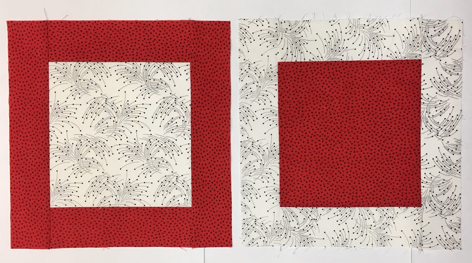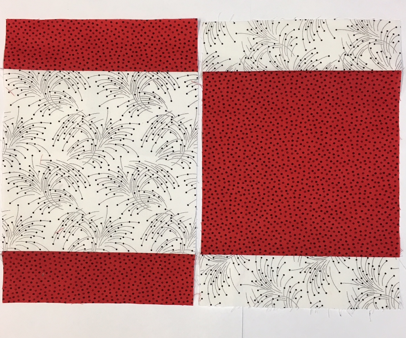 Sew the smaller rectangles to either side of the squares of the opposite colour