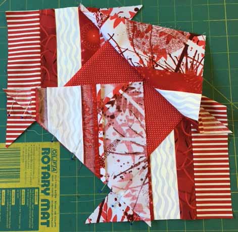 PLEASE DO NOT TRIM THE BLOCK OR TIDY UP THE IRREGULAR EDGES.  THIS WILL BE DONE BEFORE THE BLOCKS ARE SEWN TOGETHER.