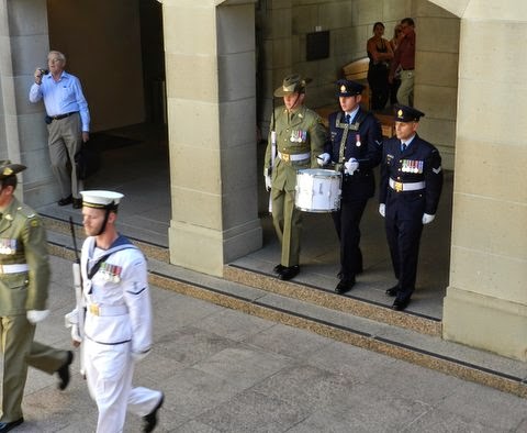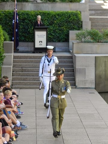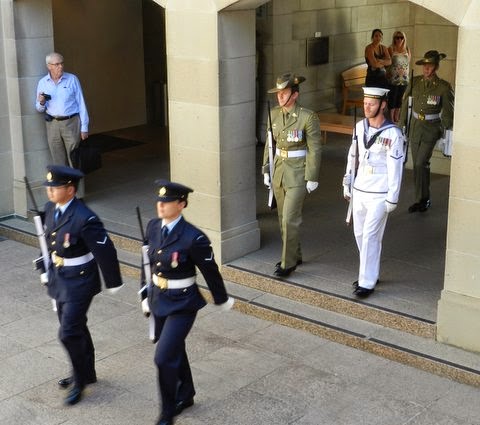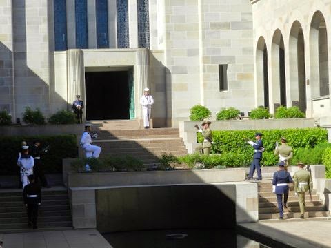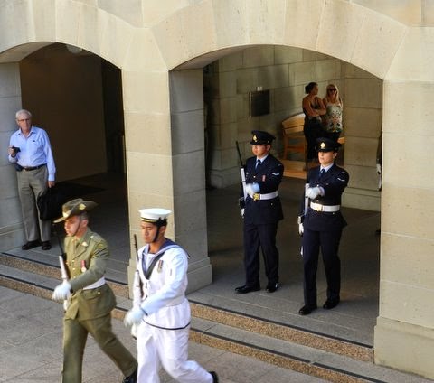 I was lucky and happened to be there on the right day to see Australia’s Federation Guard at work. On the first and third Wednesday of each month the Last Post Ceremony includes the presence of Australia’s federation Guard . At 4.00 pm a catafalque party mounted a vigil at the Tomb of the Unknown Australian Soldier in the Hall of Memory. There was a change of guard at 4.30 pm, and the entire catafalque party then participated in the Last Post Ceremony.