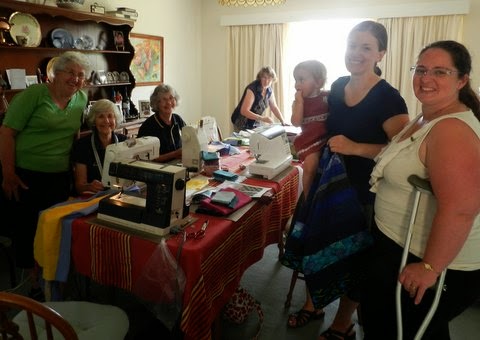 Friday dawned bright, early and warm. I headed out to Queanbeyan to attend a sewing day arranged by Jo-anne and some of her friends from a CWA (Country Women’s Association) Group. The 1st JPAU fellows had asked if there was a sewing day in Canberra that they could film. Their goal was t make a video of an Aussie Hero Sewing Day as well as interviewing myself. I have no idea when you will be able to see either of those but I will let you know when I know. I was too busy sewing but did manage to get one shot of a photographer in his natural habitat 😀