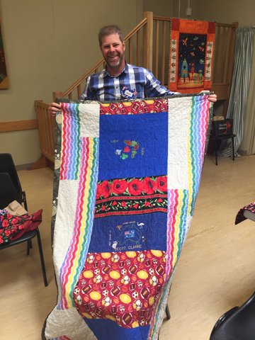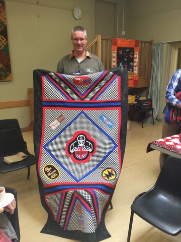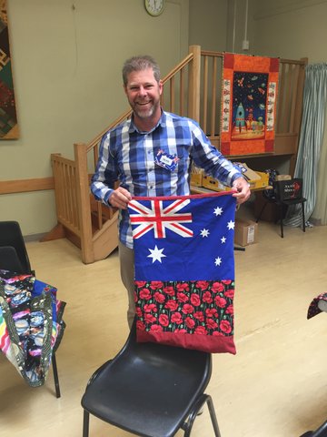 Our final recipient was Jack who received his quilt from Su. Jack came home last year if I am not mistaken and he and his wife had brought their caravan to a nearby town for the weekend. His laundry bag was in use in the van for the weekend.