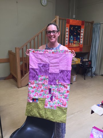 and her laundry bag, made by Wendy F, to show us.