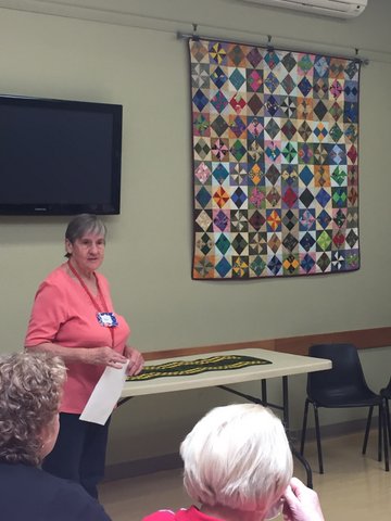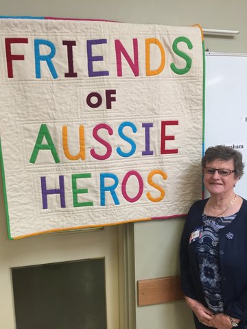 Sue welcomed everyone… As you can see, my beautiful quilt that I was surprised with on my birthday was on display. I gave an abbreviate version of my presentation from the Canberra dinner and the feedback afterwards from quilters and recipients made me realise that many people do not know the history of Aussie Heroes, and often do not know my history…. watch this space…. I might do something about that in the near future….