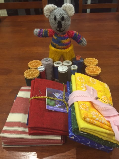 At the end of my presentation Sue surprised me with a basket of fat quarters and threads. I think all the quilters who came along brought a fat quarter or two and a reel of thread for me. Thank you everyone, that was such a thoughtful idea.
