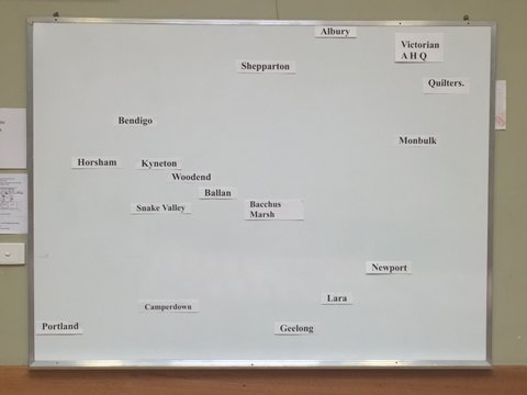 Sue had intended to have the function at her home but as the numbers grew she switched to the local community centre. This whyte board lists the areas that all those who attended came from… far and wide…..