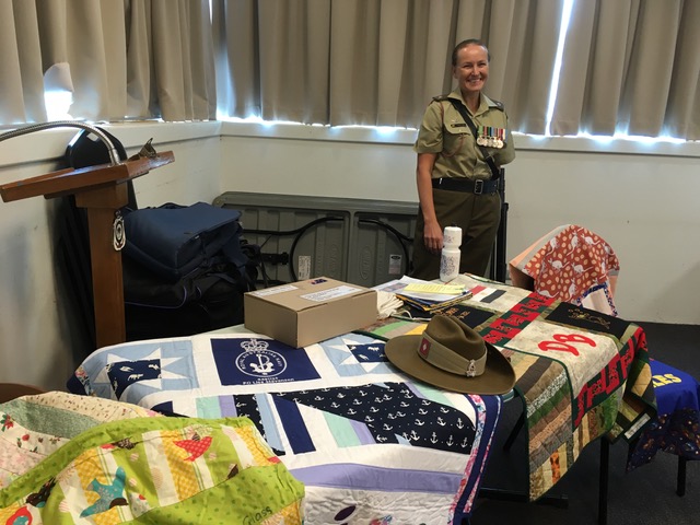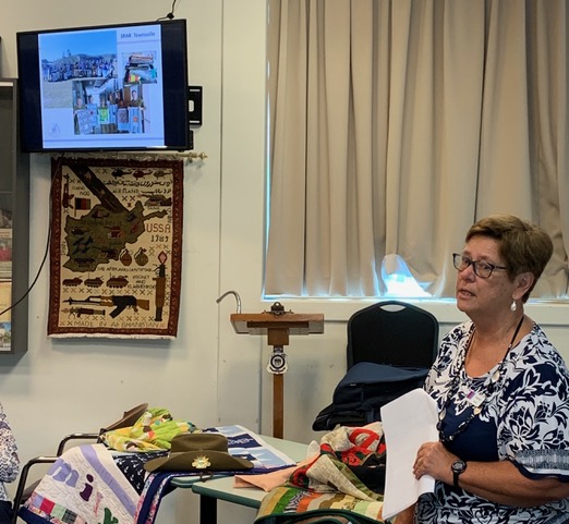 After a few Branch meeting formalities, it was our turn to take the floor. First up it was Heather’s turn to introduce the audience to “Aussie Heroes Quilts and Laundry Bags” – why and how it started almost 10 years ago and the impressive numbers we have achieved in that time.