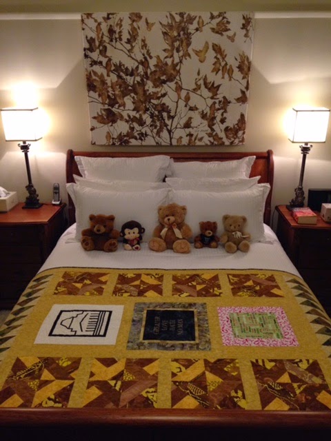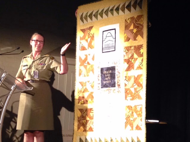 The Australian Quilt Convention got off to a wonderful start last night with their welcome cocktail party. LTCOL Michelle and I were invited as guests and Michelle did a wonderful job, giving a very heartfelt talk about how much what we do is appreciated. I have to say she reduced all of us to tears when she spoke emotionally about troops receiving a care package with a gift that had been made especially for them from someone they did not know. Many people came up to talk to her and thanked her for her service and her time last night. It was really lovely.