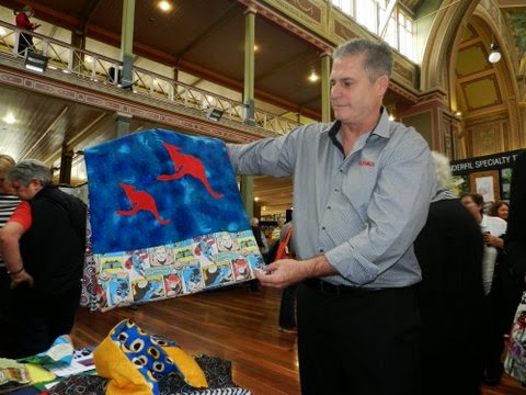 Please meet Greg Alexander, Managing Director at Bernina Australia. This man has a big heart. Not satisfied with giving us sewing machine to raffle, Bernina are also running twice daily laundry bag workshops. The ladies who sit and sew a laundry bag pay $5 for the privilege. Greg has announced that Bernina Australia will match that!!! That is a $10 donation to Aussie Heroes with every laundry bag! Thanks so much for your support Bernina,