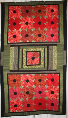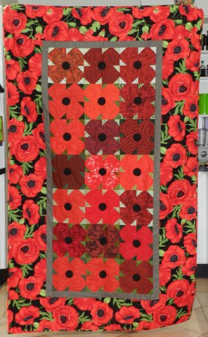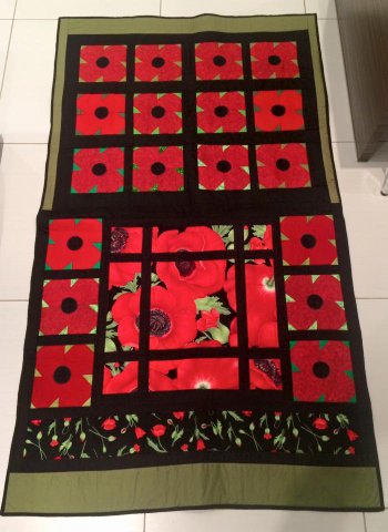 In the beginning our Fallen Warrior Quilts were made from Block of the Month Quilt tops. Eventually, in honour of Remembrance Day in 2013 we came up with the poppy block and blocks were sent in from all over Australia. Most of the quilts you will see below have been made from these blocks from contributors around the country but a few of the quilts have been made by groups or individuals.