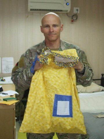 Once again Amy, many thanks for your efforts in producing items such as the laundry bag which you sent me and the enjoyment that deployed personnel such as myself get from receiving such a gift is fantastic. You obviously have a great talent there with your quilting and I hope that you continue on in your “chatting chick” role!