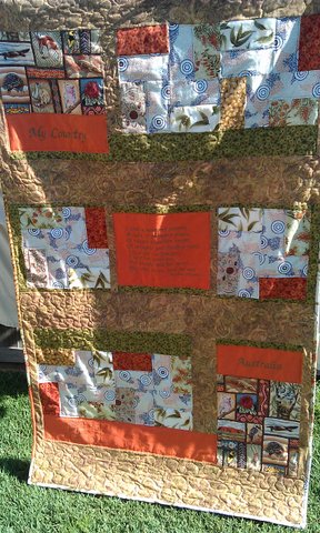 This week’s Friend of the Day is Michele, who makes those wonderful quilts, some with the Dorothy McKellar poem “My Country” on them.