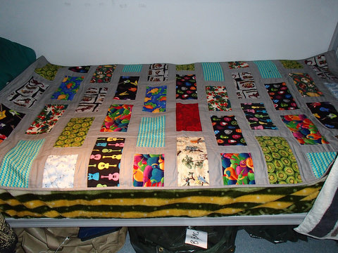 Thank-you for the quilt, it is one of the nicest things I have received and proudly sits on my bunk. The package caused quite a bit of jealousy amongst the other people I work with. It reminds me a lot of home and all the nice things to look forward to.