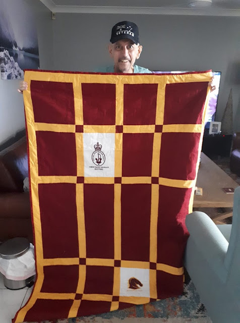 Last week CAPT Phill Henry, RAN was in Brisbane for work and had pleasure of presenting an Aussie Hero Quilt to retired Commander Darren N, a work mate and terrific friend of his. Darren is currently battling cancer, and all our thoughts are with him and his family.