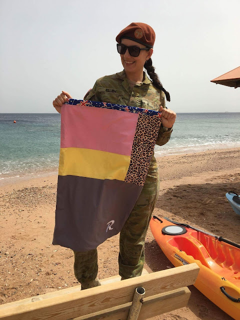 I was lucky enough to receive one of your gorgeous Laundry bags all the way across in Sinai, Egypt. I have attached a photo of me standing in front of the Red Sea.