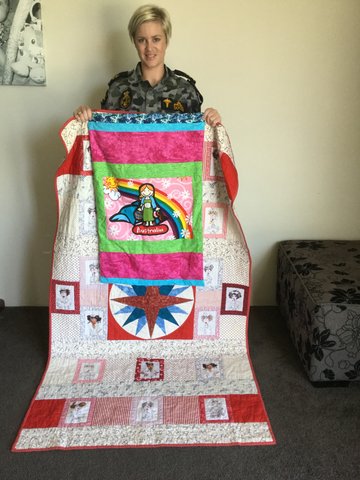 Thank you for the quilt i love it so much. I have been in the Navy for 3 years the first year was training, last year i spend the majority of it on deployment and this year i am on this current deployment. it does get hard sometimes being away from home and missing all your loved ones so it was really amazing when i received the parcel with the quilt in it and thank you for the colouring book its fun to do in my off time and all the girls in my mess and I enjoyed the timtams very much. It is great knowing there are people out there such as yourself thinking about us whilst we are away.