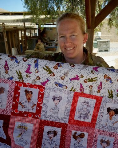 It is probably difficult for you to understand the actual impact your quilt making has on soldiers over here.  Since I heard about what you guys do with these quilts I have noticed them around. Not on beds or being used as blankets but mostly placed on walls or doors, displayed proudly and often talked about.
