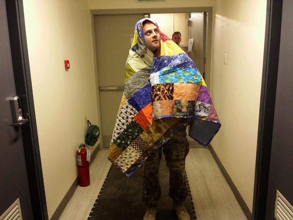 I hope you are both well and have a lovely weekend, and I cannot thank you enough for what you both do for those of us deployed overseas – it’s things like sending us quilts and laundry bags that really help when you are homesick and missing your family and friends and make the time over here more bearable…