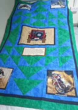 Thanks so much for the awesome quilt. I was so excited to receive it in our last mail delivery before we commence our return to Australia transit. I was blown away by how good it is, you and your lovely team of dedicated ladies really did a fantastic job and I am very grateful. I really love the quilting pattern with the stars and basketballs, it looks amazing. You must have a pretty impressive quilting machine.